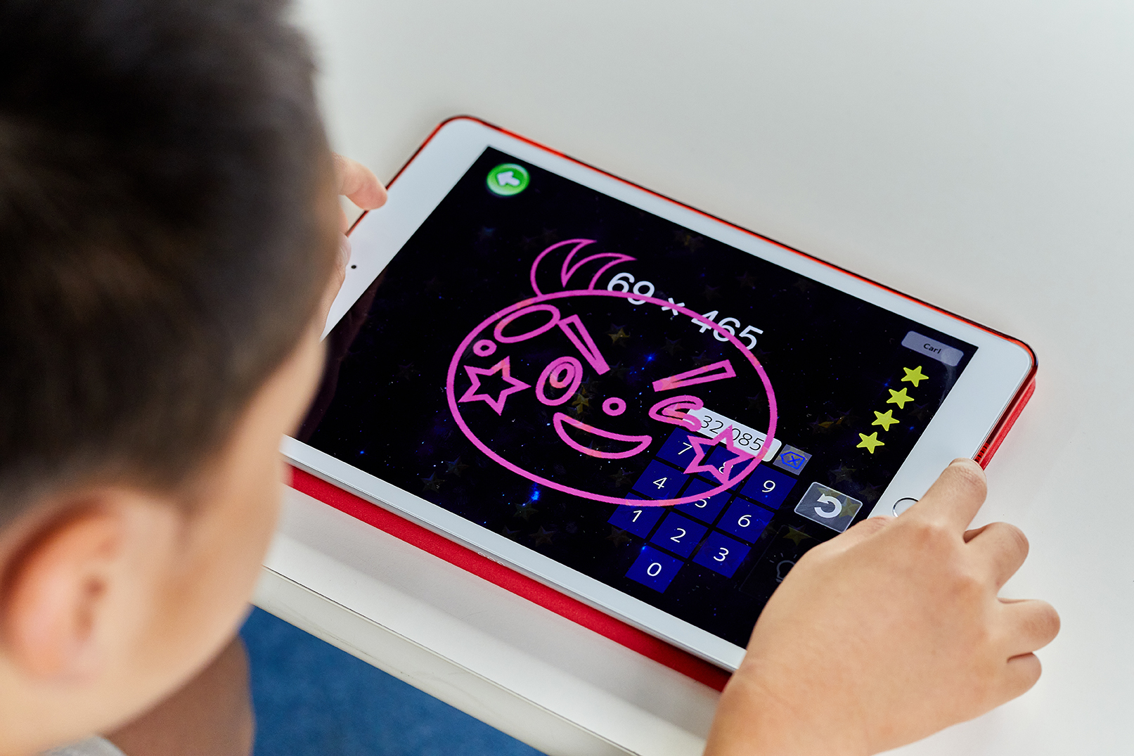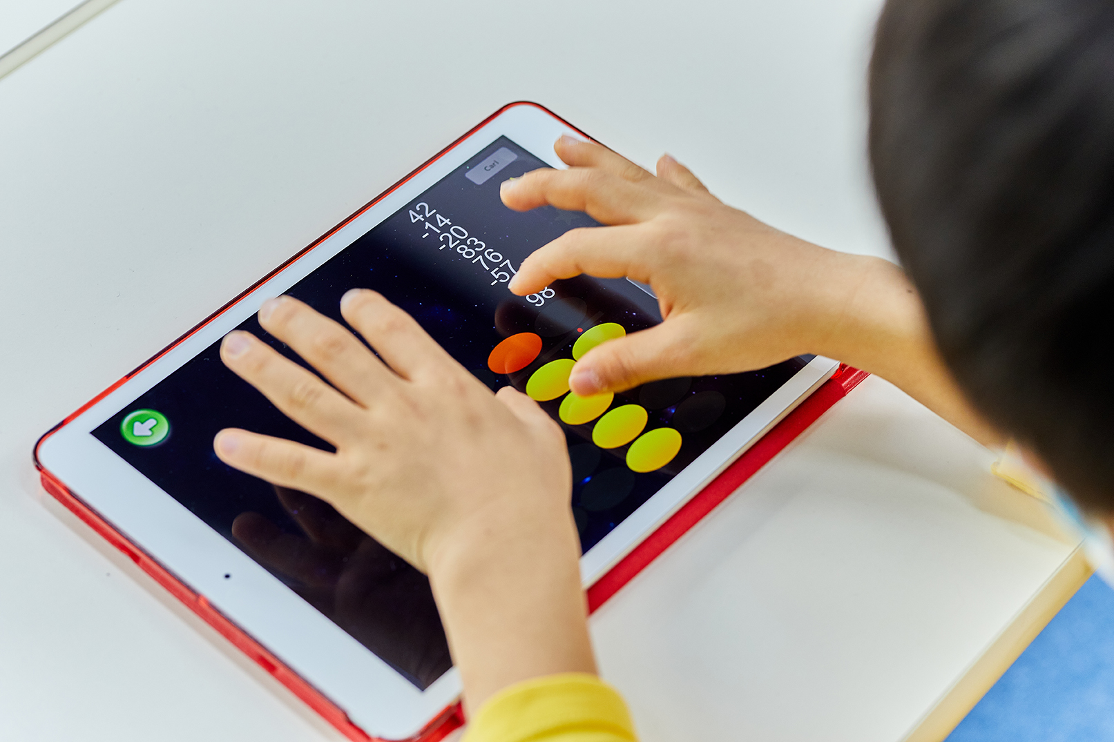 暗算力は、大人になっても、どこの国でも通用するチカラで、人生を豊かにします。そろタッチは、そろばんの仕組みを応用し、タブレット上の珠に両手でタッチして操作することで、「みえるモード」と「あんざんモード」の2つのモードの反復により、数を珠の形で捉え、頭の中で変換する「イメージ暗算(そろばん式暗算)」が効率的に身に付く新しい暗算学習法です。