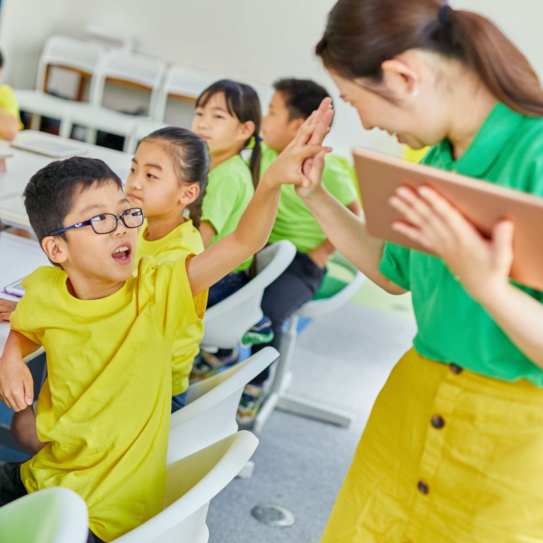 そろタッチを学習することで、周りの大人よりも早くて正確な暗算力がどんどん身に付いていく経験が自信につながり、自分はやればできるというマインドが育成されます。 また、授業内のグループアクティビティを通して、自発性や社交性、思いやりも育まれます。